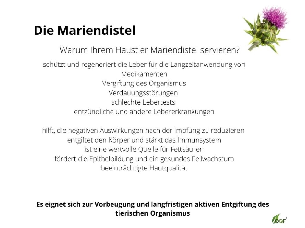 Ihr Pferd ist wie ein wunderschönes Schloss, und die Leber ist sein wichtigster Wachturm. Dieser Turm schützt das ganze Schloss vor Feinden (Schadstoffen). Die Mariendistel ist wie ein Zauberelixier, das den Wachturm stärker und widerstandsfähiger macht! Wenn der Wachturm stark ist, wird die ganze Burg (dein Pferd) gesünder und glücklicher sein! 🏰✨