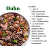 enthält 46,2% Hühnerbrust oder -schenkel, 9% Hühnerherz oder -magen, 4,8% Hühnerleber, 39% Gemüse (Karotten, Süßkartoffeln, grüne Linsen, Rote Beete, Erbsen, Blumenkohl und Brokkoli), 1% Petersilie und Leinsamen